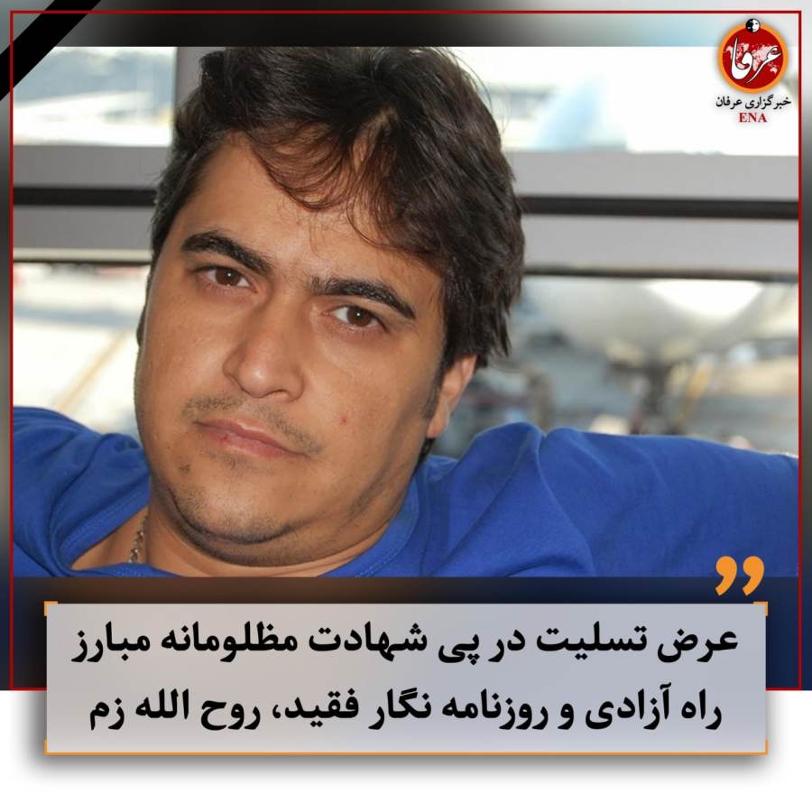 ⚫️ با کمال تاسف و تاثر، شهادت مظلومانه مبارز راه آزادی، روزنامهنگار فقید، جناب آقای «روح الله زم» که به دست ظالمان زمانه به دار آویخته شد را به اعضاى محترم خانواده، کلیه آزادیخواهان و مبارزان راه حق و همچنین جامعه روزنامهنگاران و خبرنگاران صادق و ظلمستیز ایرانی تسليت عرض کرده و از پیشگاه خداوند متعال برایش طلب مغفرت مینماییم.