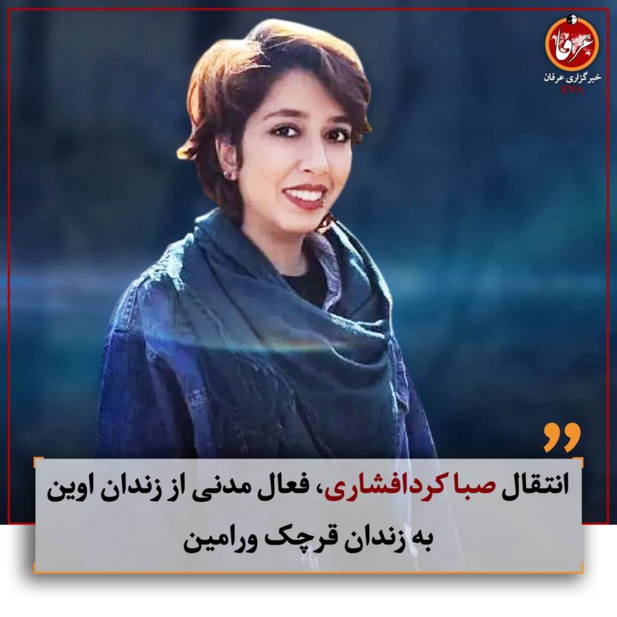 صبا کردافشاری، زندانی سیاسی و از معترضان به حجاب اجباری روز چهارشنبه ۱۹ آذرماه بدون اطلاع قبلی از بند زنان زندان اوین به زندان قرچک ورامین منتقل شد.